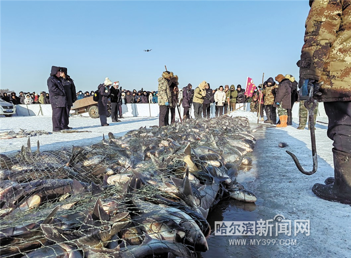 渔猎文化传薪火,人欢鱼跃庆丰年。1月23日,作为2025黑龙江“冷水鱼·冬捕季”系列活动的重要组成部分,哈尔滨市宾县第五届二龙湖冬捕节启幕。随着千米巨网缓缓拉动,万尾鲜鱼破冰腾跃,这场集千年渔猎文化展示、全年龄段冰雪娱乐、特色产业推广于一体的冬日盛会,不仅为游客呈现了冷水渔业丰收的壮观图景,更以农文旅深度融合的生动实践,推动冷水鱼产业与冰雪旅游实现高质量发展。