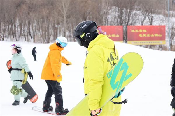 在“魔王板社”店内,来自苏州的游客吴先生正试穿雪鞋。“这边雪场温度适宜,适合新手。店里装备全,我只带了随身衣物,店家还帮忙推荐合适的雪板,特别方便。”