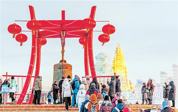 春节将至,在银装素裹的哈尔滨冰雪大世界,园区以冰雪为媒,以民俗为韵,打造多处祈福打卡点,让游客在纯净冰雪中许下新年心愿,把福气与好运一起带回家。