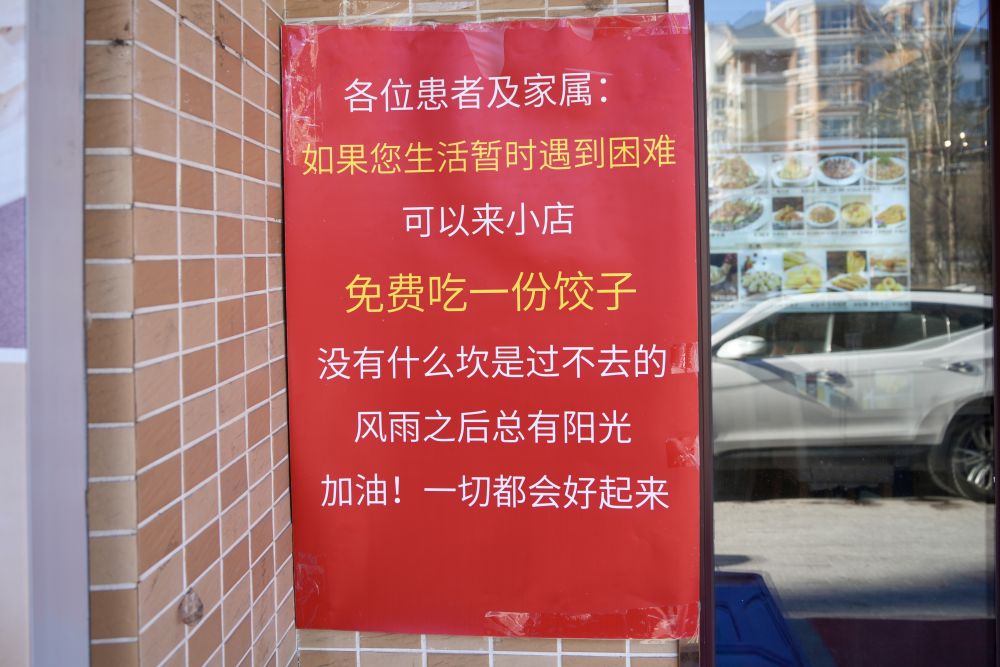 自那次后,孔繁会看到类似情况就会送上一盘饺子。后来他怕自己顾不上,专门在店门口做了告示:如果您生活暂时遇到困难,可以来小店免费吃一份饺子。