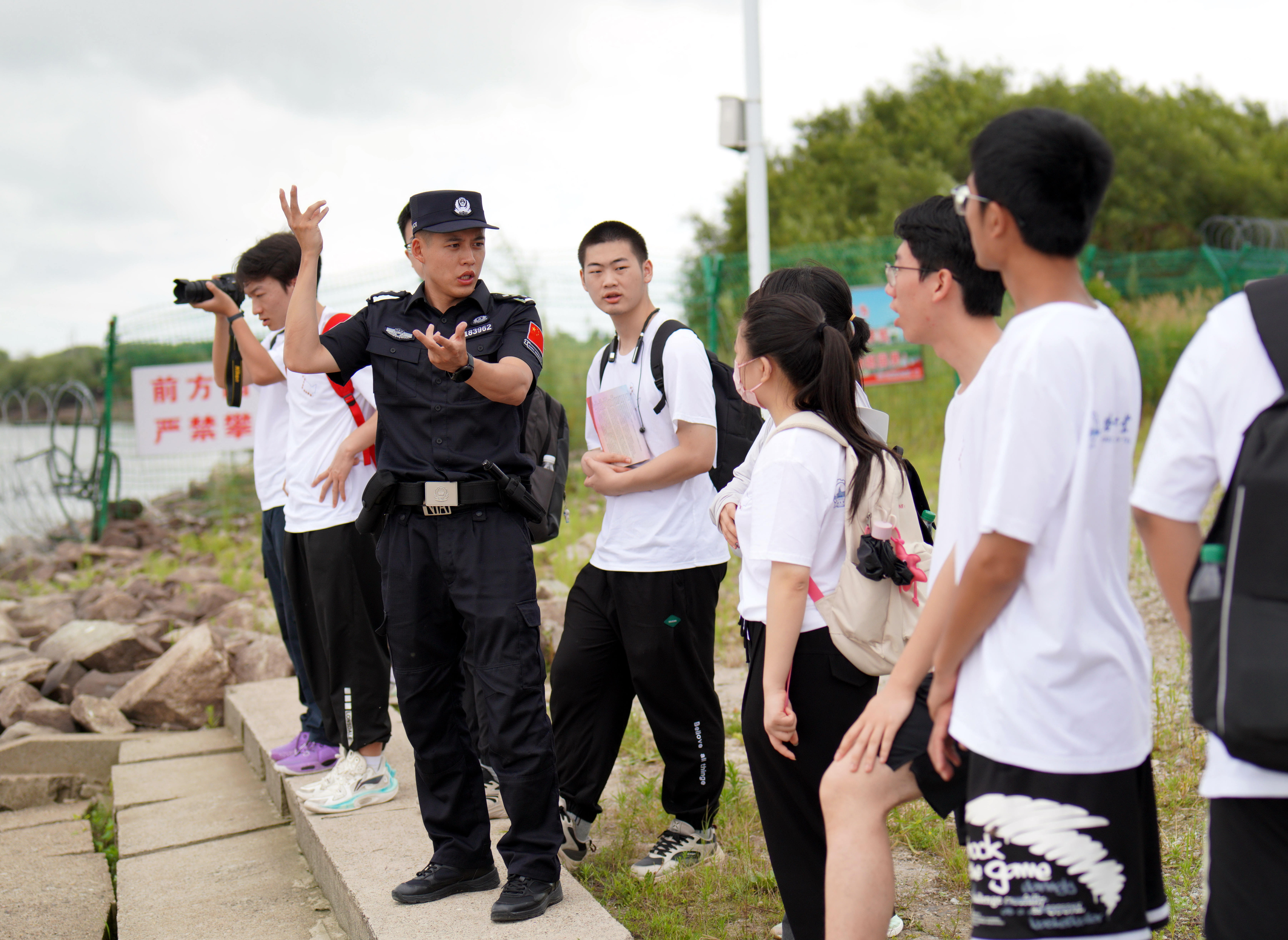 “这里是国家级自然保护区,属内陆湿地和水域生态系统类型……”同学们第一站来到位于祖国最东端的领土——黑瞎子岛,黑瞎子岛边境管理大队的民警为大学生们讲解了岛上的生态情况。民警带领同学们先后来到东极宝塔、参观江上执勤趸船等,为同学们详细介绍了移民管理机构职责职能等基本概况。