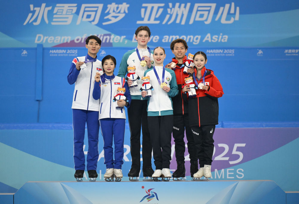 2月12日,第九届亚冬会花样滑冰项目双人滑自由滑比赛在哈尔滨举行。最终,乌兹别克斯坦组合叶卡捷琳娜·盖尼什/德米特里·奇吉列夫获双人滑冠军,朝鲜组合廉太钰/韩锦澈和日本组合长冈柚奈/森口澄士分获亚军、季军。