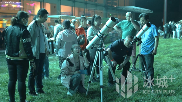 夜幕降临,星空露营活动有序开展,游客们围坐谈天,享受惬意时光。星空电影在露天场地浪漫开场,仰头便能将璀璨星河与电影画面尽收眼底。同时,黑龙江省天文学会精心筹备的天文望远镜星空观测研学活动也有序开展,游客借此得以窥探平日肉眼难见的星辰奥秘。当望远镜完成调试,月球表面的陨石坑、环形山等细节慢慢变得清晰可辨。