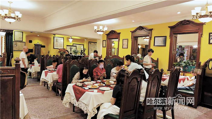 餐厅内,刀叉碰撞的声音、食客交谈的声音、后厨传菜的声音、服务员叫号的声音,汇聚成“美食交响曲”,让百年老店满是烟火气与热闹劲儿。“暑期这段时间,餐厅的客流量很大,多数时候还要排队。”塔道斯西餐厅总监尹成权告诉记者,如今游客来到哈尔滨,不仅要吃西餐,还要在西餐厅“吃出历史”“吃出文化”。“70%顾客是游客,而且这个比例还在增大,可以看出游客对哈尔滨西餐的喜爱程度。”