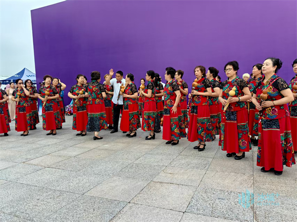 2025哈尔滨马拉松于8月31日鸣枪开跑。在位于太阳岛的比赛终点站,66岁的黑龙江省葫芦丝协会副会长王军带领45名团员参与其中。