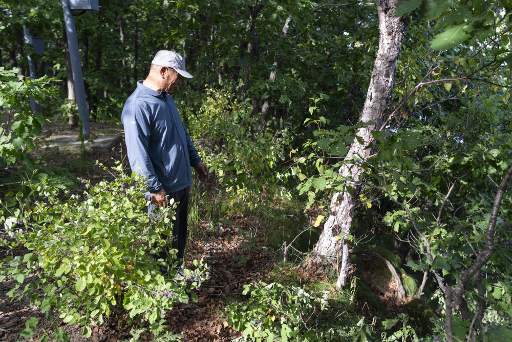 8月21日,饶河县文物保护中心副研究馆员杨永才在小南山遗址中查看一处发掘点。新华社记者 谢剑飞 摄