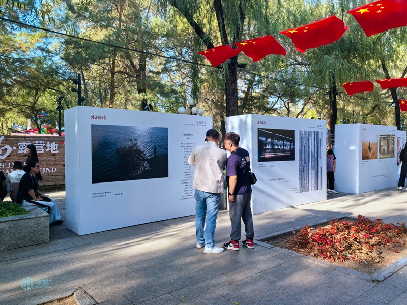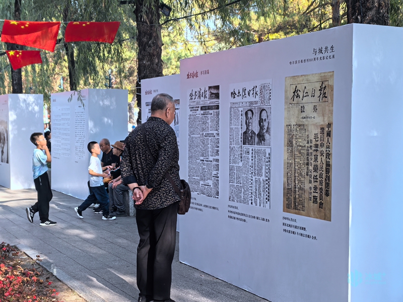 10月3日下午,记者在游人如织的太阳岛风景区坐龙广场上看到,络绎不绝的市民和游客被展板上泛黄的报纸版面、珍贵的历史图片、匠心独运的摄影佳作吸引。他们或驻足欣赏,细细品味每一张照片背后的故事;或围绕着作品热烈讨论,分享各自的见解与感受。