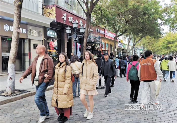 连日来,记者在哈市部分知名街区、餐饮机构看到,虽然未到冰雪季,不少外地游客已经抵达哈尔滨赏秋景、品美食。在中央大街记者看到,一些旅行团导游带着游客游览街区,边讲解哈尔滨的历史,边介绍街区各式特色建筑,不少游客被商家销售的面包、冰棍吸引,纷纷加入“排队大军”。在马迭尔西餐厅,来自广东的陈女士一行品尝了哈尔滨的特色西餐。陈女士告诉记者,来哈之前就已经查了“美食攻略”,这次特地来马迭尔西餐厅,可以一边欣赏西餐文化、观看特色表演,一边品味哈尔滨西餐的魅力。多位游客表示,哈尔滨太美了,打算冬天“再约尔滨”。