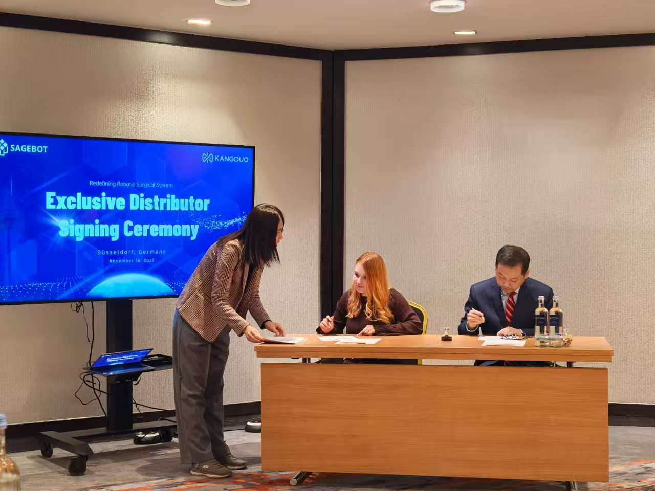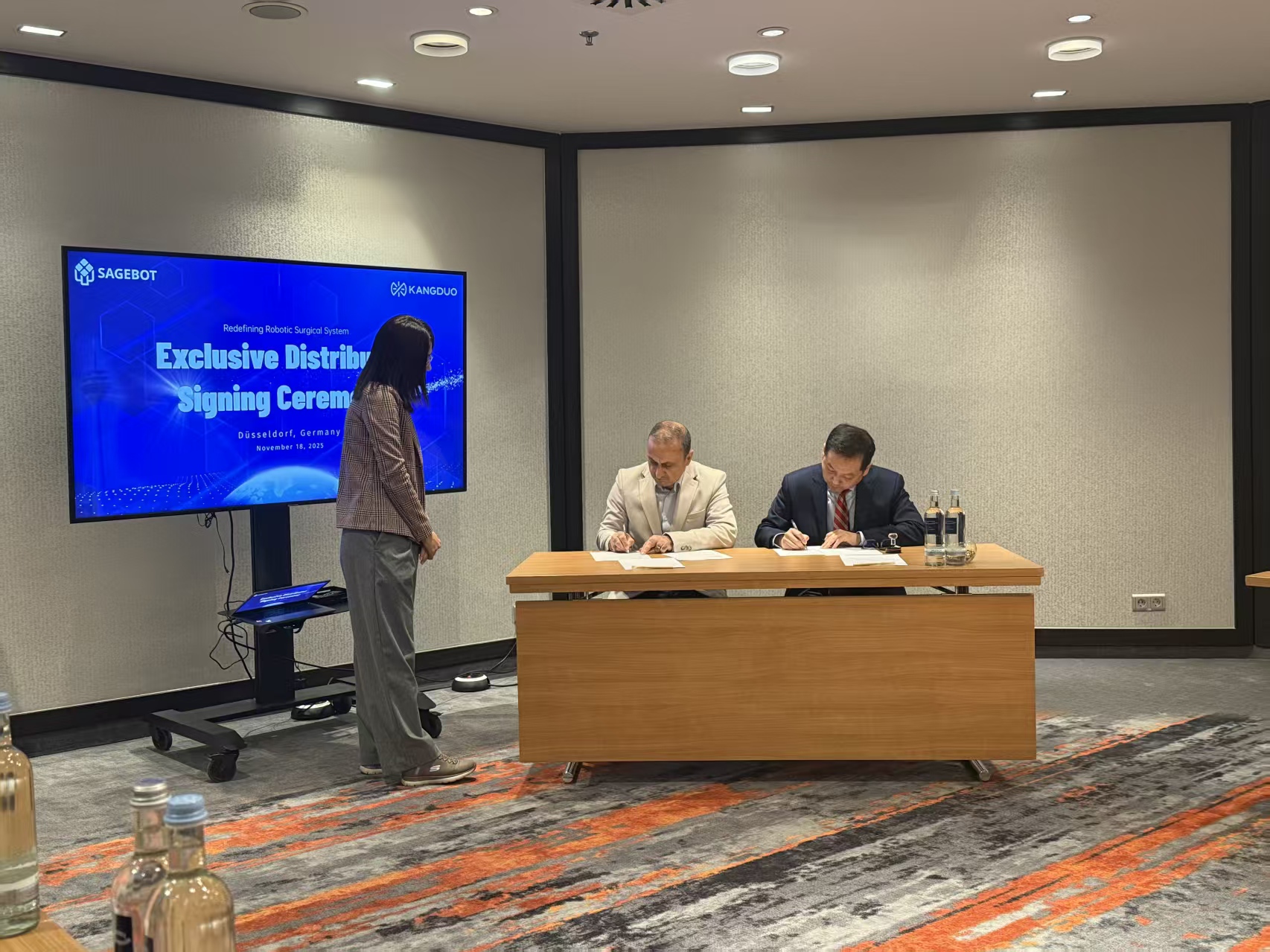 11月20日,全球规模最大的医疗展会Medica 2025在德国杜塞尔多夫圆满落幕。在这场云集全球70多个国家、5300多家企业的行业盛会上,哈尔滨思哲睿智能医疗设备股份有限公司携其自主研发的康多机器人®胸腹腔内窥镜手术系统(SR2000)表现亮眼,并与乌克兰、荷兰、土耳其三国合作伙伴成功签署独家代理协议。此举标志着这家中国手术机器人企业迈出深耕欧洲市场的关键一步,为其全球化战略注入强劲动力。