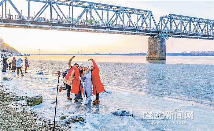 随着冰雪季的到来,哈尔滨旅游逐渐升温,不少游客来到松花江畔打卡拍照。
