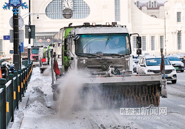 2月4日夜间至5日上午,哈市再度迎来一场降雪天气。为保障市民游客出行安全、城市交通顺畅,哈市清冰雪人员闻雪而动,展开清冰雪作业。