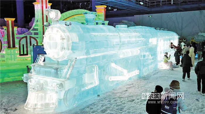 网红冰火车被“搬进”梦幻冰雪馆。
