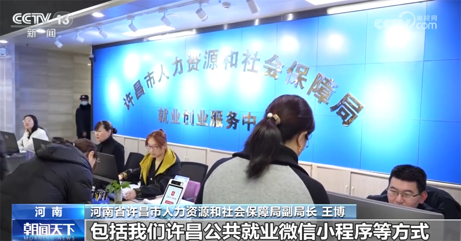 河南省许昌市人力资源和社会保障局副局长王博介绍:“我们利用覆盖全市102个乡镇的全域网络覆盖工程,包括许昌公共就业微信小程序等方式,同步开展线上招聘,真正为外地企业招聘到合适人员提供方便和便捷。”