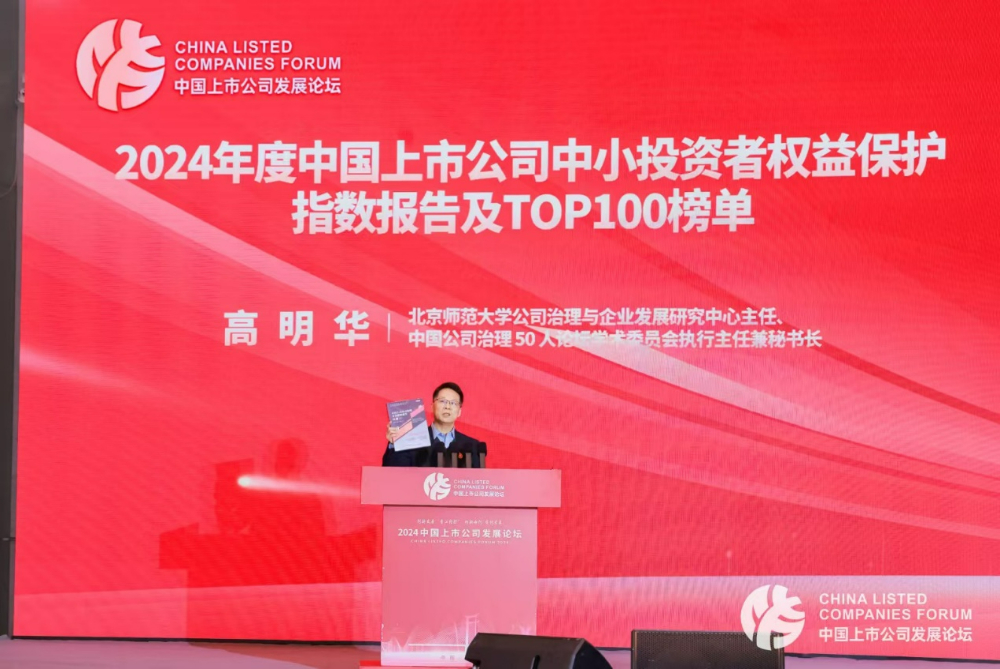 活动现场,中国公司治理50人论坛发布中小投资者权益保护指数。 新华网发