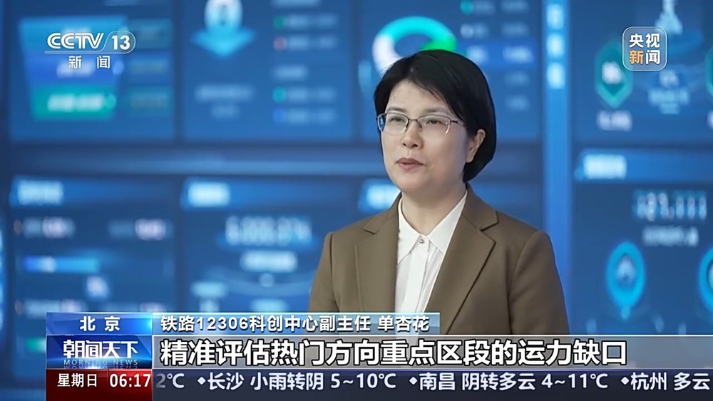 铁路12306科创中心副主任 单杏花:精准评估热门方向重点区段的运力缺口,有备用车底的情况下,最快可以在2小时内发布调度命令、维护数据、发售车票、组织旅客乘车、发车。