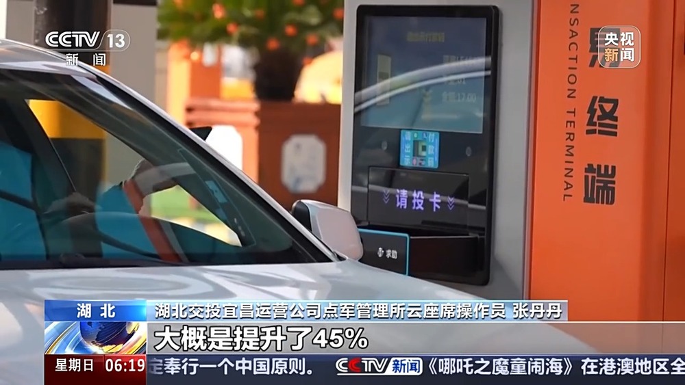湖北交投宜昌运营公司点军管理所云座席操作员 张丹丹:比如车辆在通过的时候车牌抓取有误,像过去我们可能在收费亭里面才能操作,现在通过云座席软件就可以更改车牌、车型等。相比传统的人工,入口速度提升了50%,出口自助缴费机的通行速度大概提升了45%。