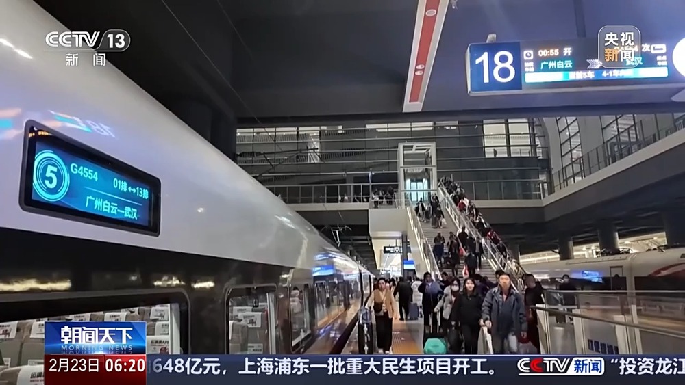 今年春运,185组时速350公里的复兴号新车上线,其中42组用在广深港高铁、贵广高铁等线路;另外,在京广高铁武汉至北京、广州方向,沪汉蓉高铁武汉至上海方向,以及成渝至北京等方向都增开了智能复兴号动车组列车,列车运行速度更快,旅客乘坐更加舒适。