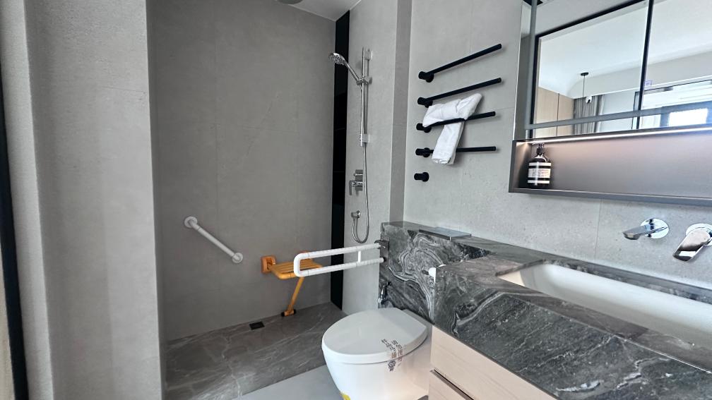 业主许贺说,这里的房子减少公摊面积,厨房、卫浴等空间增加约50%,“空间大,更智能,既符合年轻人对‘舒适’‘智慧’的向往,又满足老人对居住‘安全’‘绿色’的需求,我劝说父母也换了一套”。