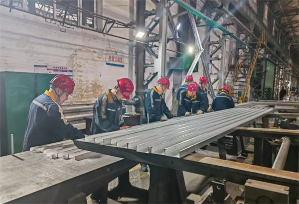 东轻特材从挤压效率、工模具优化、热处理缩时、新产品攻关等方面协同发力,促进产品质量与效率跨越式提升。通过对模具重新优化设计,东轻特材成功突破了重点规格合金挤压速度瓶颈。突破传统固溶热处理工艺限制,单炉次效率提升10%,产品合格率达到100%。硬质合金型材攻关团队打破技术壁垒,实现批量化稳定生产。通过持续优化棒材生产工艺,成功实现出口级高端铝合金棒材批量化稳定生产,为高产提供保障。