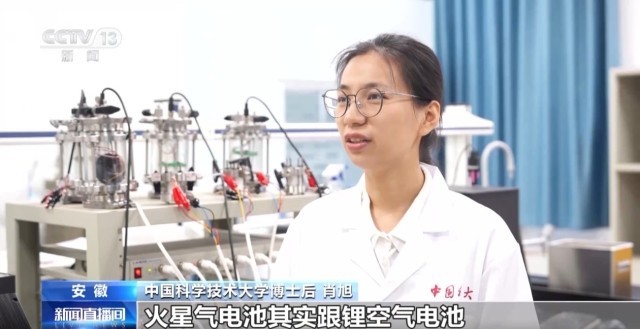 中国科学技术大学博士后 肖旭:火星气电池其实跟锂空气电池、锂二氧化碳电池是一脉相承的,它是将空气中或者是火星中的大气成分吸入到电池里面,然后作为它的主要的活性气体,然后释放出电能,供火星车或者是火星直升机的使用。