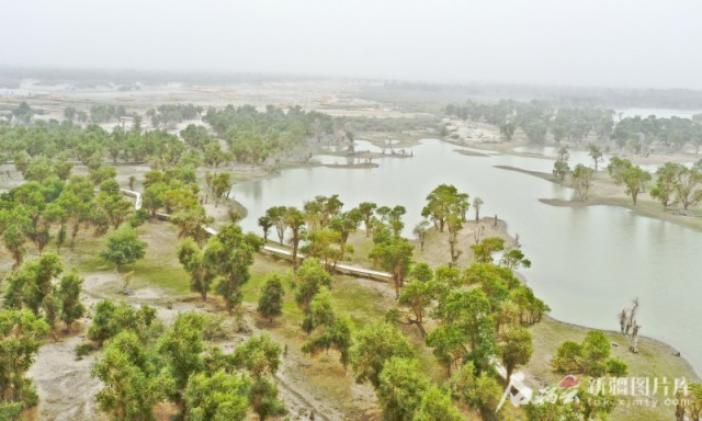 塔里木河上游湿地自然保护区湿地面积逐步扩大(6月12日无人机摄)。