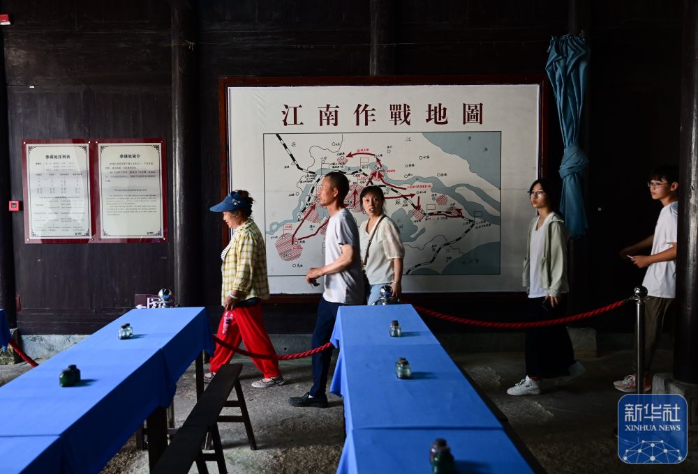 ↑ 7月15日,游客在新四军军部旧址纪念馆参观。