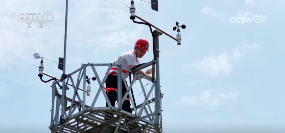 传感器在气象站风塔的顶端,四周毫无遮挡,阳光直射下,这座10余米高的铁塔表面温度超过60℃。维护员徒手攀爬检修,塔架热浪扑面,作业结束后全身湿透、体力透支。