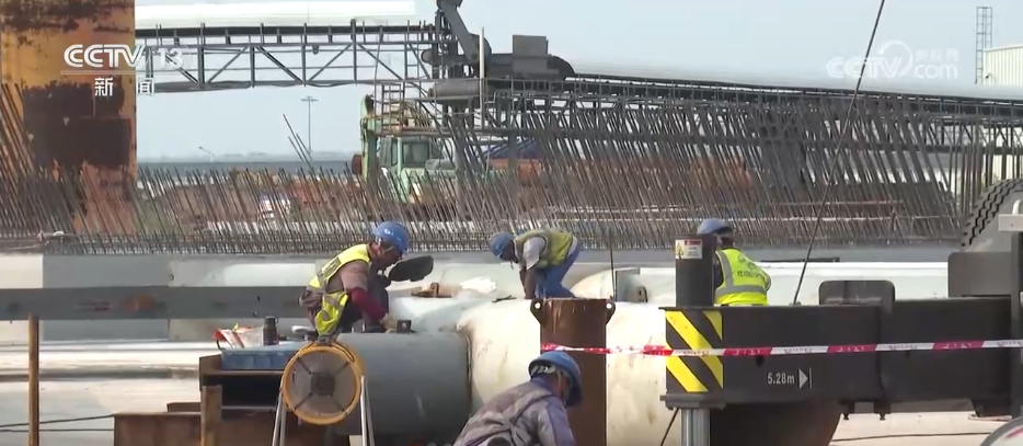 记者现在来到狮子洋大桥的锚碇施工现场,有800多名的施工者正在战高温、抢工期。在记者身边的施工者都是钢筋工,工人不仅要长时间在户外作业,有的拧螺丝的工人还要长时间蹲着去拧螺丝。