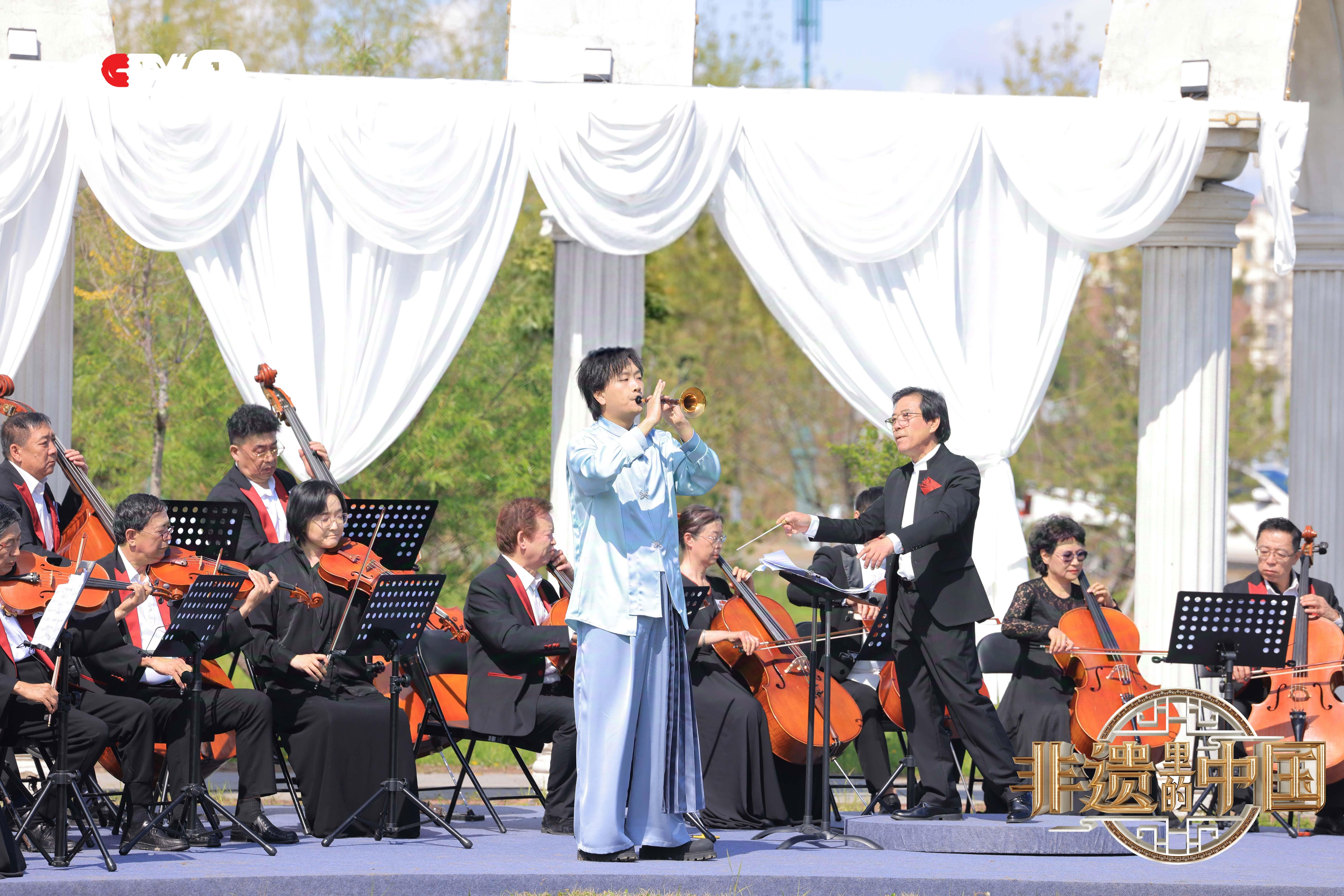 技艺的传承,靠口传心授,更靠一代代艺人的实践与创新。唢呐演奏者孙名川与交响乐团合作,共同演奏交响乐版本的赫哲族民间曲调《乌苏里船歌》,唢呐的高亢与交响乐的宏大相互辉映。当民间艺人的即兴花舌与现代音乐交织共振,吴家鼓吹乐棚正以青春的姿态叩响时代的大门。