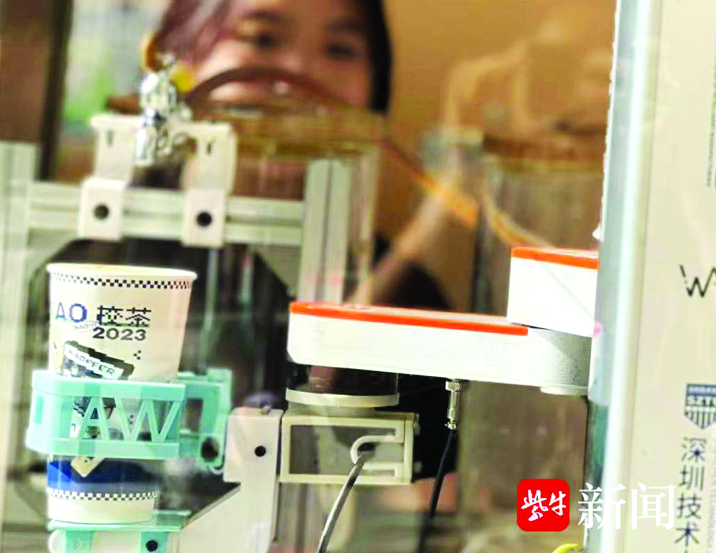 “我17岁就爱喝奶茶,主理机器人奶茶店的创意是源于店铺的6位年轻主理团队成员都爱喝奶茶的缘故。”张天瑞这样说。2019年,正在深圳技术大学读大一的张天瑞和其他5名同学就开始在学校附近运营一家传统奶茶门店,2021年开始进行智能茶饮机器人的探索,在此之前差不多制作了20000杯奶茶。