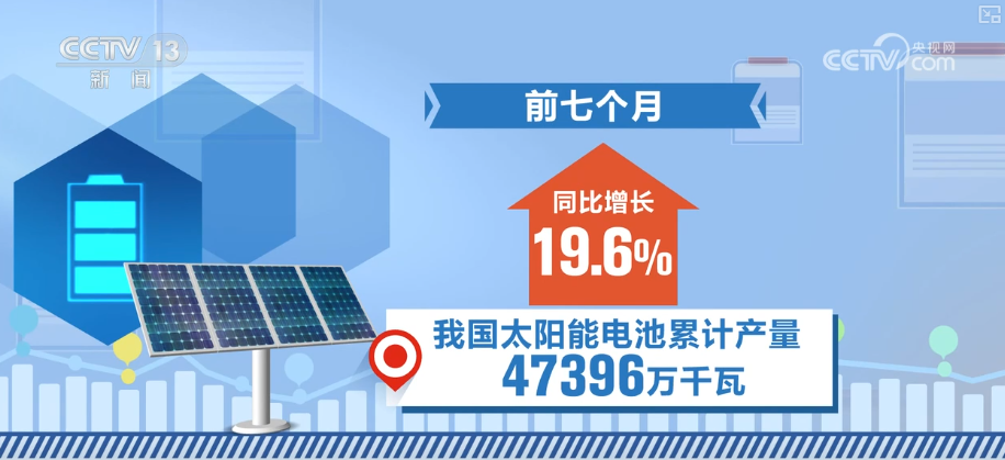 同时,清洁能源装备生产高速发展。前7个月,我国太阳能电池累计产量为47396万千瓦,同比增长19.6%。风电机组已出口至108个国家和地区,出口金额稳步提升。
