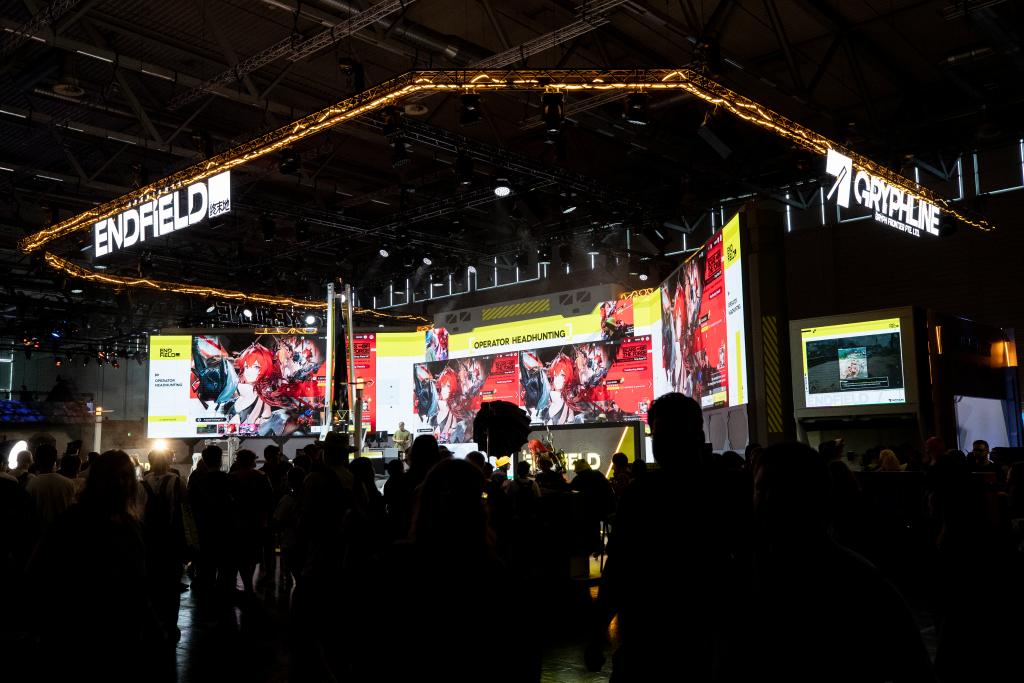 8月21日,在德国科隆,参观者在科隆游戏展观看游戏《明日方舟:终末地》对战。新华社记者张帆摄