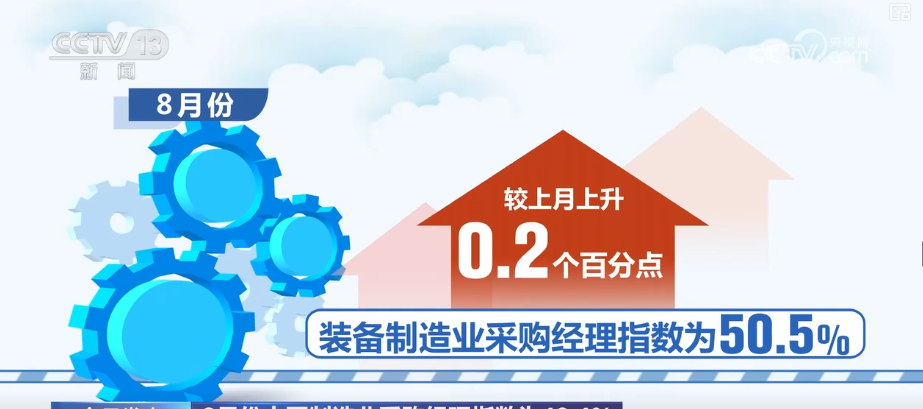 央视网消息:中国物流与采购联合会、国家统计局服务业调查中心8月31日公布8月份中国采购经理指数。其中,制造业采购经理指数环比小幅回升,向好基础继续巩固。
