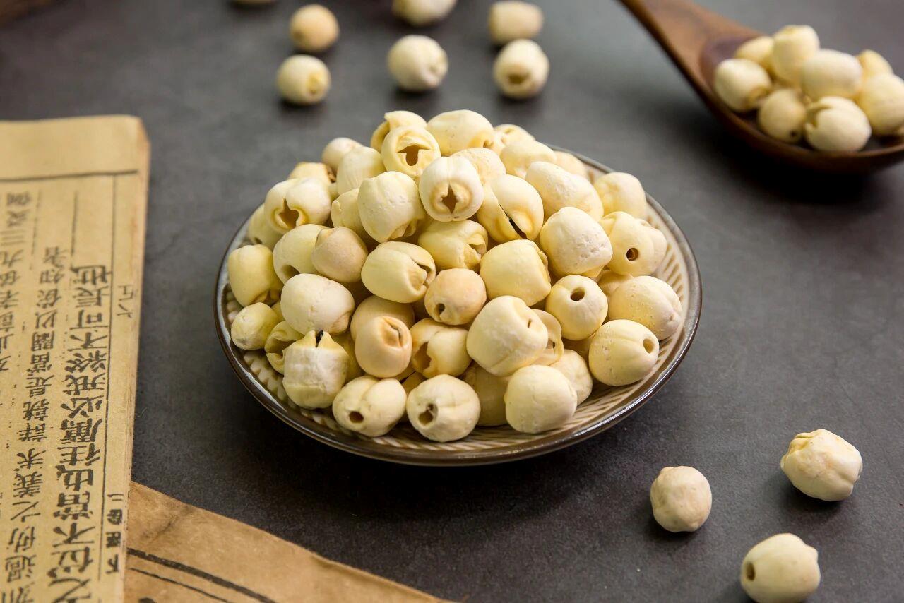 莲子的营养价值体现在丰富的营养素组合上。除了富含淀粉,是优质的碳水化合物来源之外,莲子还含有一定量的植物蛋白、B族维生素、矿物质以及植物多酚、莲子碱等成分,莲子的苦味就来自于莲子碱。现代研究表明,莲子芯中富含莲子碱,具有一定的镇静效果,有助于缓解心烦、失眠等情况。