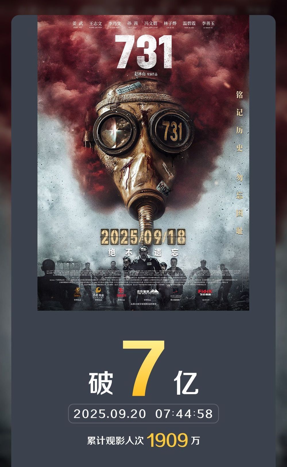 《731》于9月18日在全球多地上映,19日,在美国、加拿大上映。