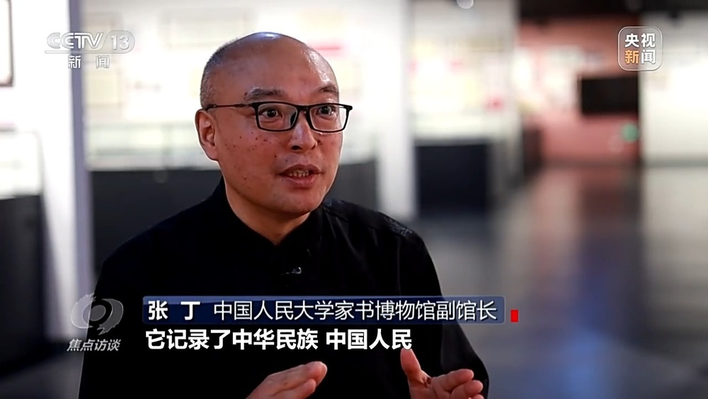 中国人民大学家书博物馆副馆长 张丁:它记录了中华民族、中国人民遭受日本侵略的灾难以及中国军队、中国各阶层人民不屈的抗争,一封封沾满硝烟和苦难交织的血泪家书,一张张生动的老照片,让大家走进那段历史。
