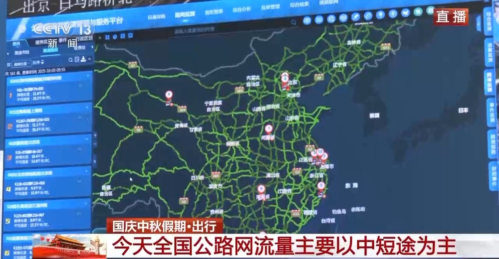今天(10月3日)是国庆中秋假期第三天,一起来看看此时全国公路、水路的出行情况。