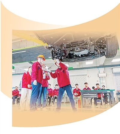 山东水利技师学院实训中心,学生正进行整车维修和保养操作。翟慎安摄