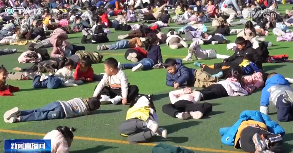来场“日光浴”!操场变身大型“晒娃”现场 大课间玩出新花样