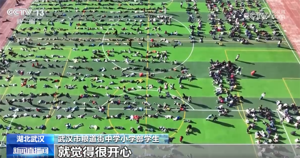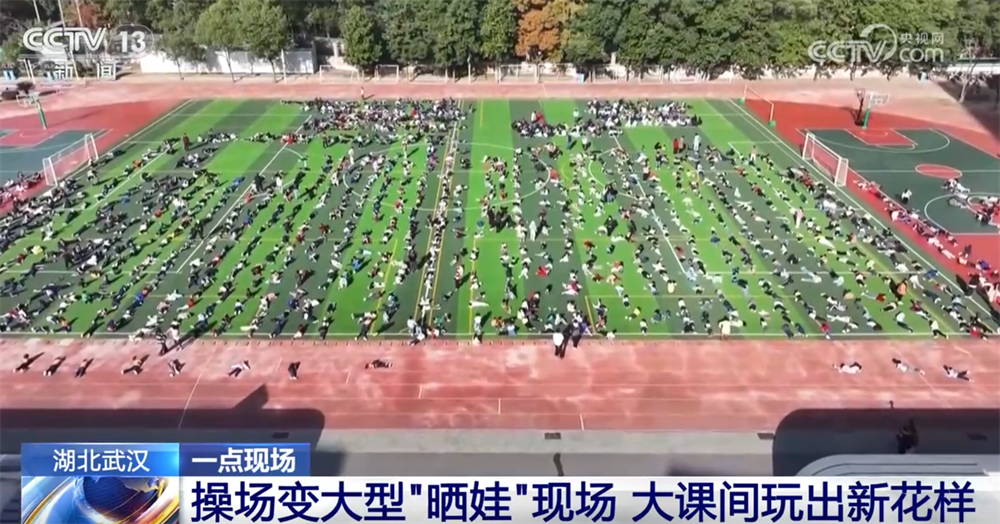 央视网消息:最近一段时间,湖北暖阳高照、温度适宜,武汉市一所小学的操场秒变大型“晒娃”现场,1000多名小学生们齐刷刷躺下享受操场“日光浴”。