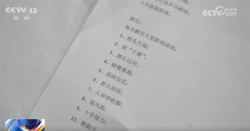 要是遇到阴雨天,孩子们“晒”什么呢?学校负责人向记者展示了一张特别的“课表”——枕头大战、踏石过河……这些都是“大课间”活动菜单,确保孩子们每天的大课间 “风雨无阻” ,都能玩得尽兴。
