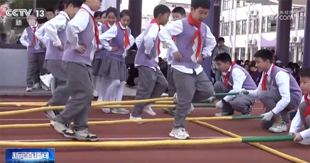 粮道街中学小学部的创新实践,正是湖北省 “超级大课间”改革的缩影。通过每节课缩短5分钟的方式,“挤”出40分钟的专属活动时间,鼓励各校因地制宜开展特色课间活动。比如,光谷十二小的击剑操、荆州中小学的球类运动、恩施校园的传统竹竿舞等等,形式不同,但这样的大课间都是为了让孩子们在运动中收获快乐与健康。
