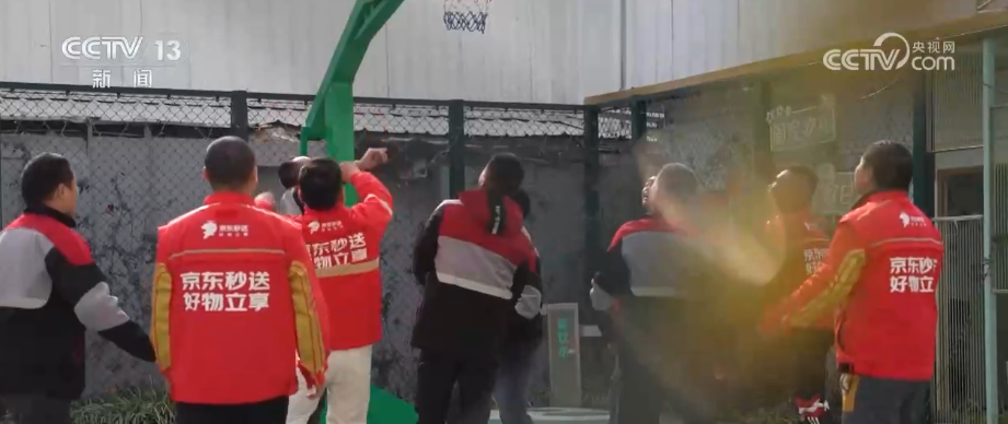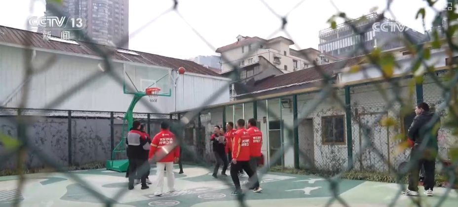在上海江宁路街道新就业群体党群服务站,记者看到快递小哥们正在这里打篮球。