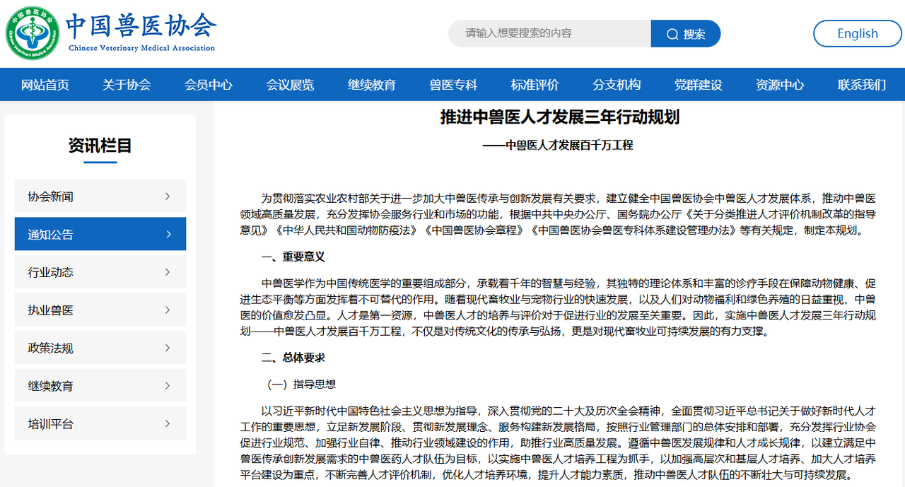 不过这样的状况正在改善。去年,中国兽医协会印发了《推进中兽医人才发展三年行动规划——中兽医人才发展百千万工程》,争取通过3年时间,评价中兽医专科医师百名以上,发展中兽医师千名以上,培养中兽医应用人才万名以上。