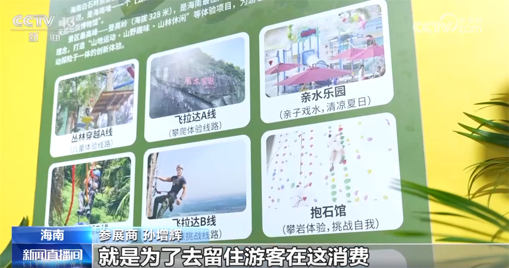 参展商孙增辉称:“我们在打造的沉浸式和体验感的体验旅游,就是为了留住游客在这里消费,我们将迎来更多的国际和国内的游客来海南进行消费,助力海南国际旅游消费中心的建设。”
