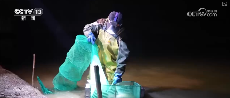 凌晨4时滁河里的鱼塘,江苏浦口虾农康光辉带着两位师傅开始了一天的劳作。他们借助头灯的亮光,拉起沉甸甸的虾笼逐个打捞。岸上收虾商户也已早早赶来。