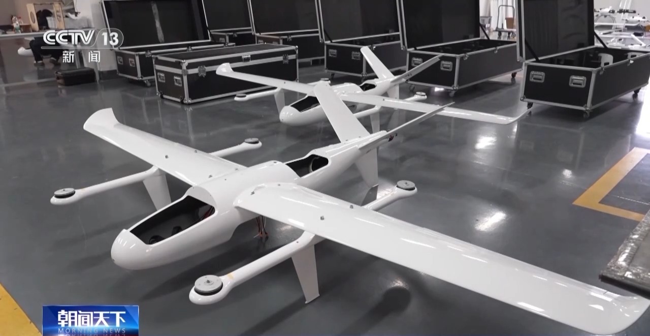 明德新材(赣州)技术有限公司董事长 彭小勇:2023年7月从深圳入驻到江西赣州南康低空产业园。产量翻了10倍,人员也扩大了两倍。最近公司量产了一款新型固定翼无人机。