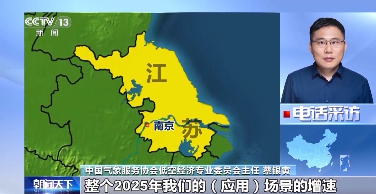 中国气象服务协会低空经济专业委员会主任 蔡银寅:整个2025年我们的应用场景增速至少在50%以上,原来没有的场景,或者是原来处于科学论证的实验室里的场景,我们有很多真实落地了。
