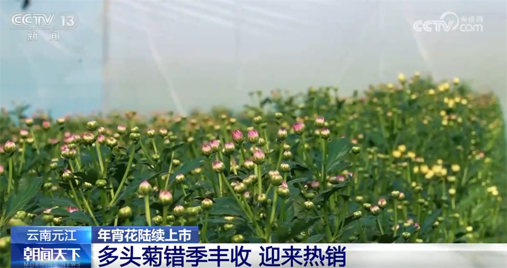 多头菊由于花型丰富、色彩鲜艳、花期较长,常被加工成盆栽或鲜切花,是重要的节庆花卉。临近春节,在云南省玉溪市元江县种植的多头菊也开始错季丰收。