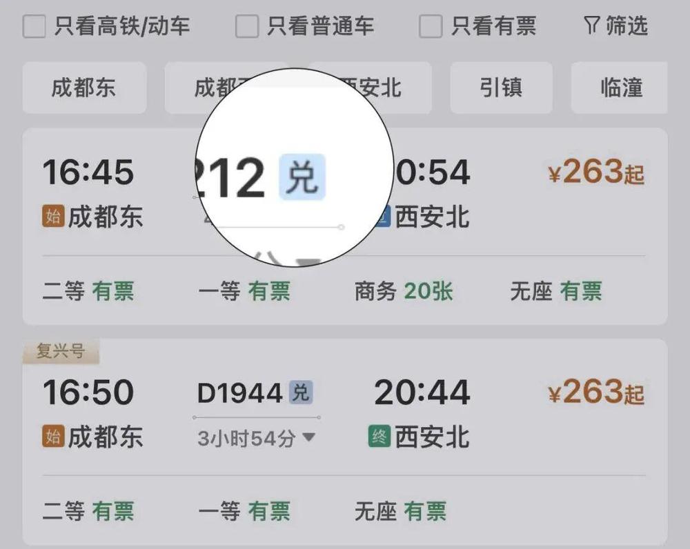 显示“兑”字的车次